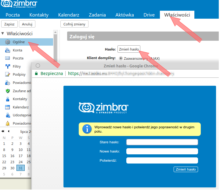 Opisane poniżej operacje należy wykonywać po zalogowaniu do Poczty przez WWW przy użyciu obecnego hasła.