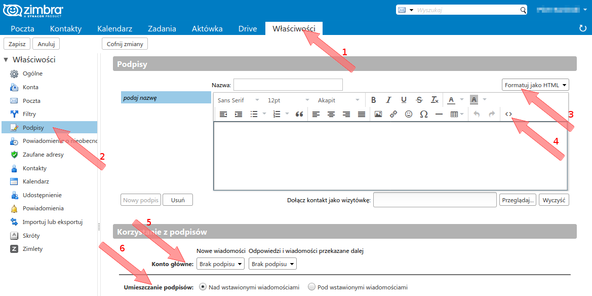 UWAGA: Sygnatury te są dołączane przy wysyłaniu przez klienta webowego (przez www). Przy mailach wysyłanych za pośrednictwem protokołu SMTP (z programów Thunderbird, Outlook®, z telefonu) sygnatury te nie są dołączane.