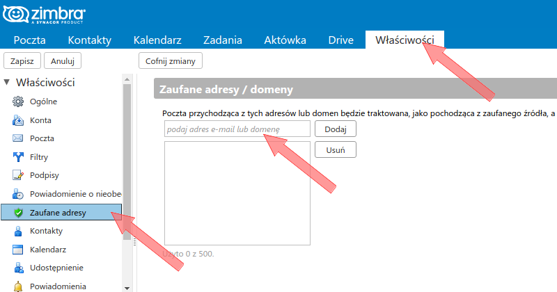 Dotyczy poczty w domenach: